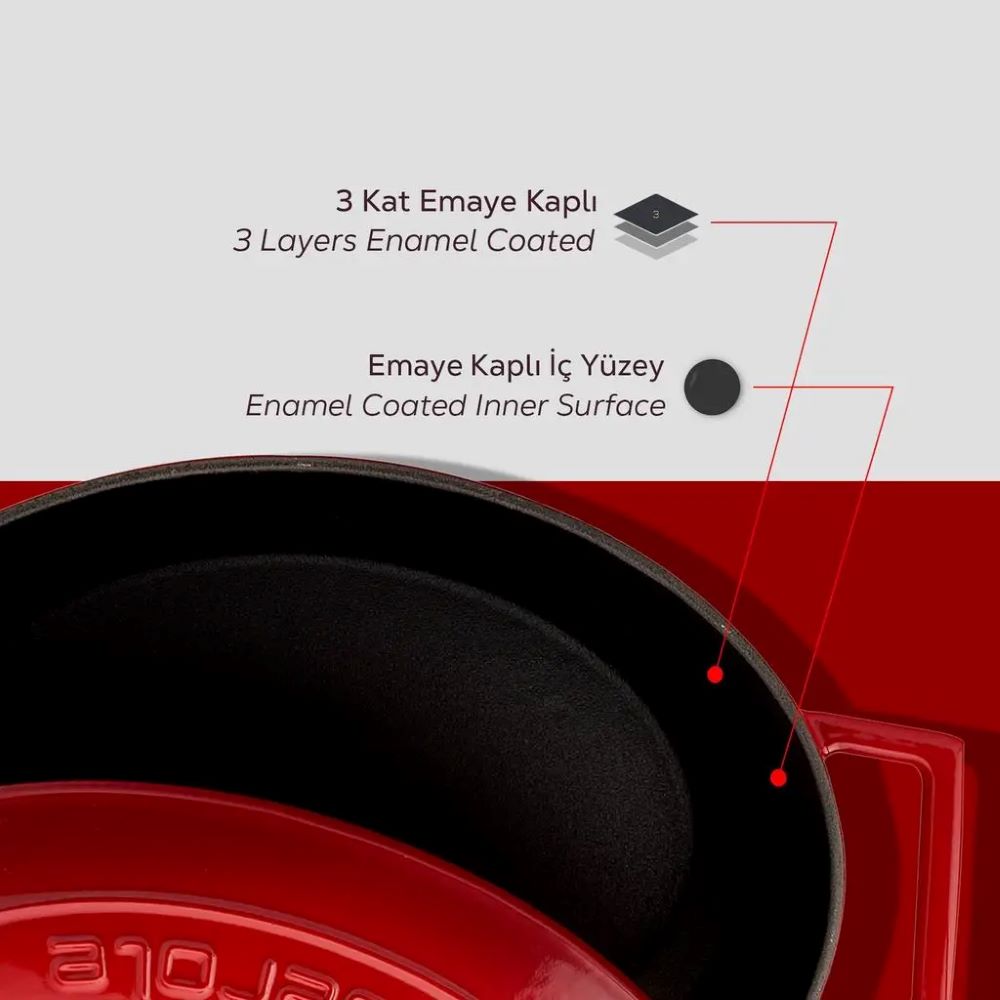 Peretii vasului au o grosime de 4 mm. In interior, vasul prezinta un strat de email negru ce faciliteaza crearea unei suprafete anti-adezive atunci cand se gateste folosind grasimi.