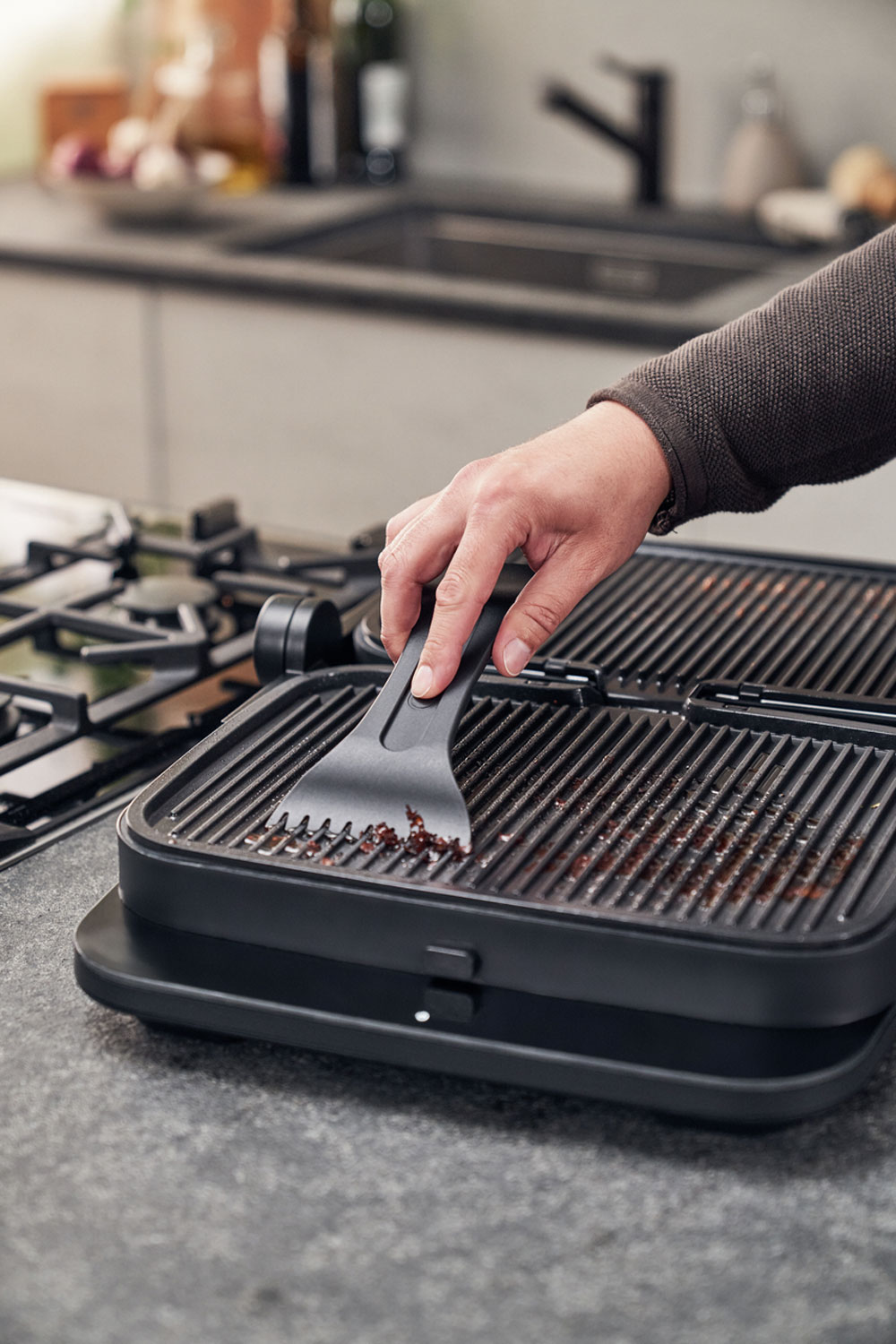Pentru o experienta personalizata, puteti seta manual si individual temperatura celor doua placi, precum si timpul de gatire - totul usor si intuitiv cu ajutorul ecranului tactil de pe partea frontala a gratarului.