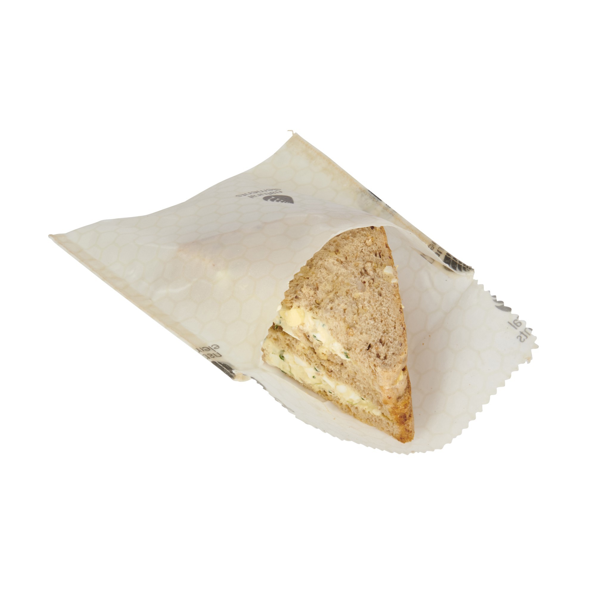 Bumbacul 100% nealbit este imprimat cu cerneala de soia ecologica, sigura pentru alimente, inainte de a fi infuzat cu un amestec de ceara de albine si uleiuri din stupi gestionati in mod etic si durabil.