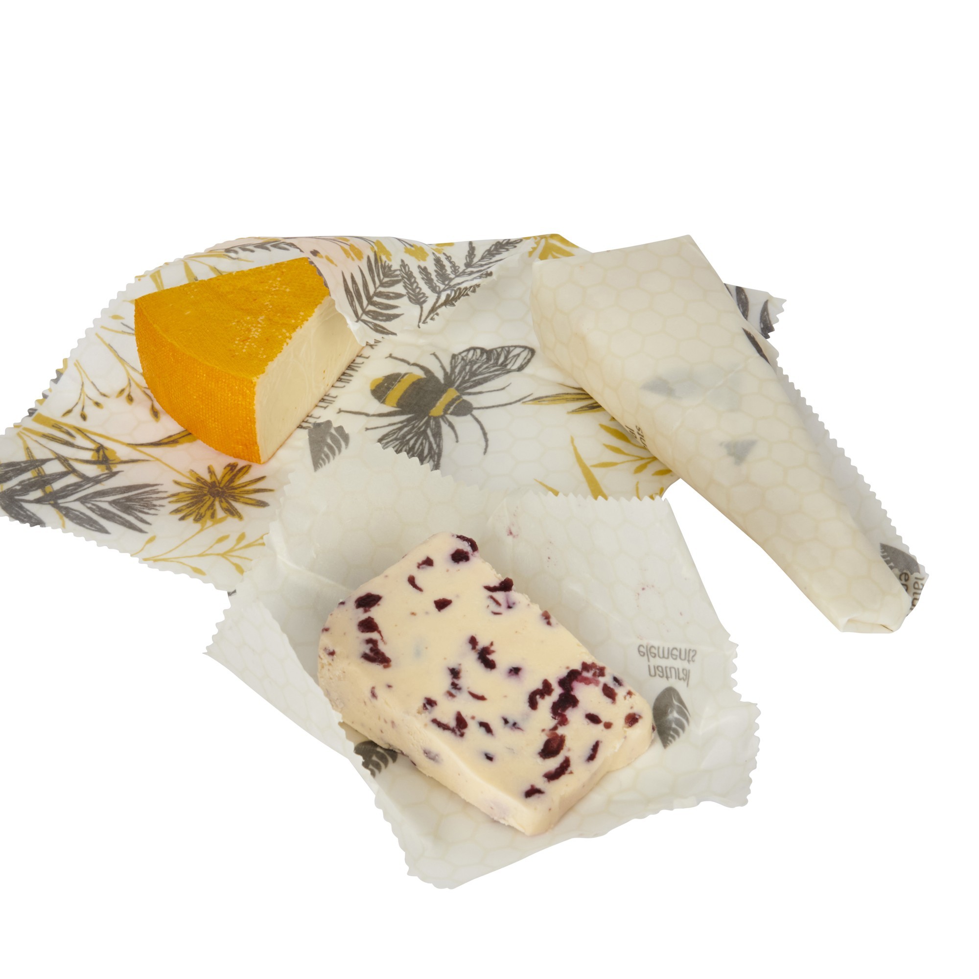 Bumbacul 100% nealbit este imprimat cu cerneala de soia ecologica, sigura pentru alimente, inainte de a fi infuzat cu un amestec de ceara de albine si uleiuri din stupi gestionati in mod etic si durabil.