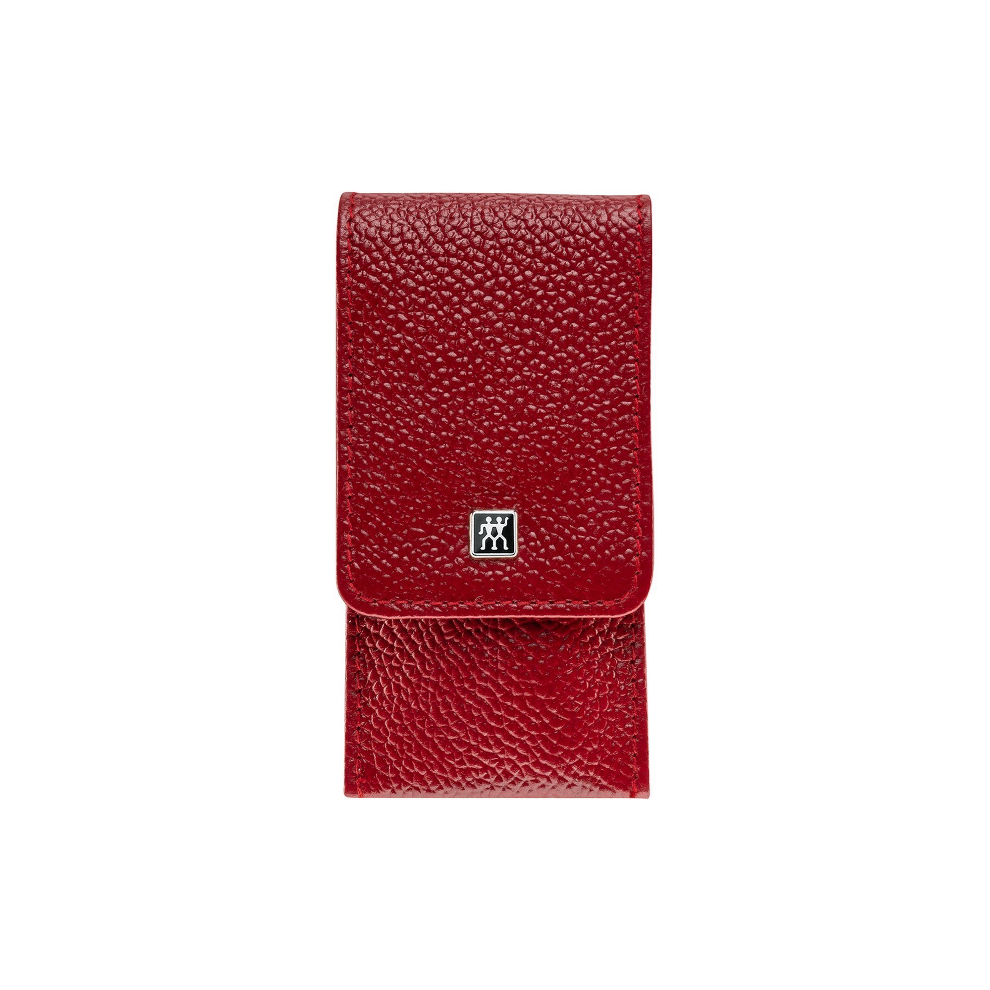 Set 3 piese marca Zwilling, din inox satinat, in suport-toc din piele rosie.