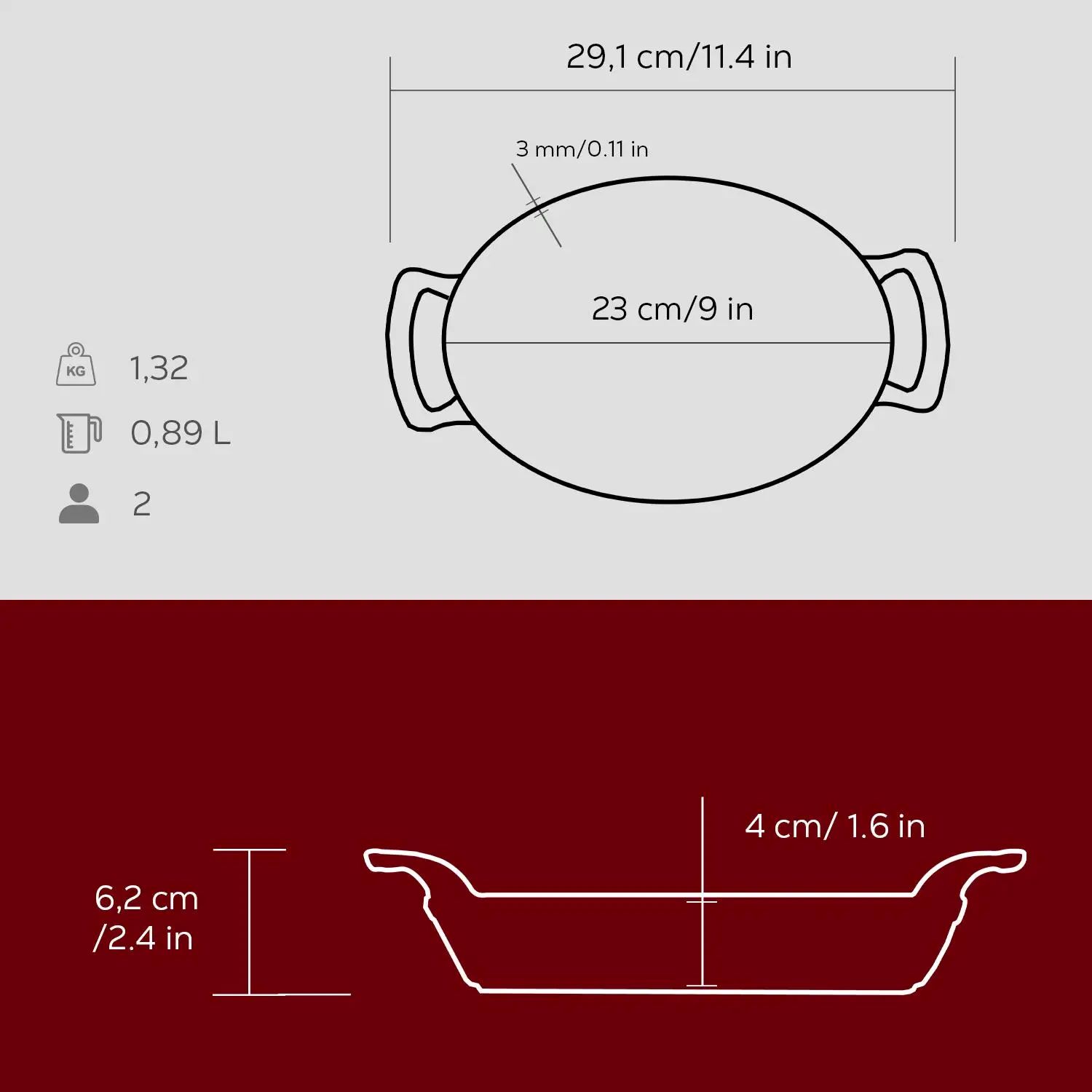 Tava ovala, marca Lava, dimensiuni 23 x 17 cm, 0,89 l capacitate, fabricata din fonta.