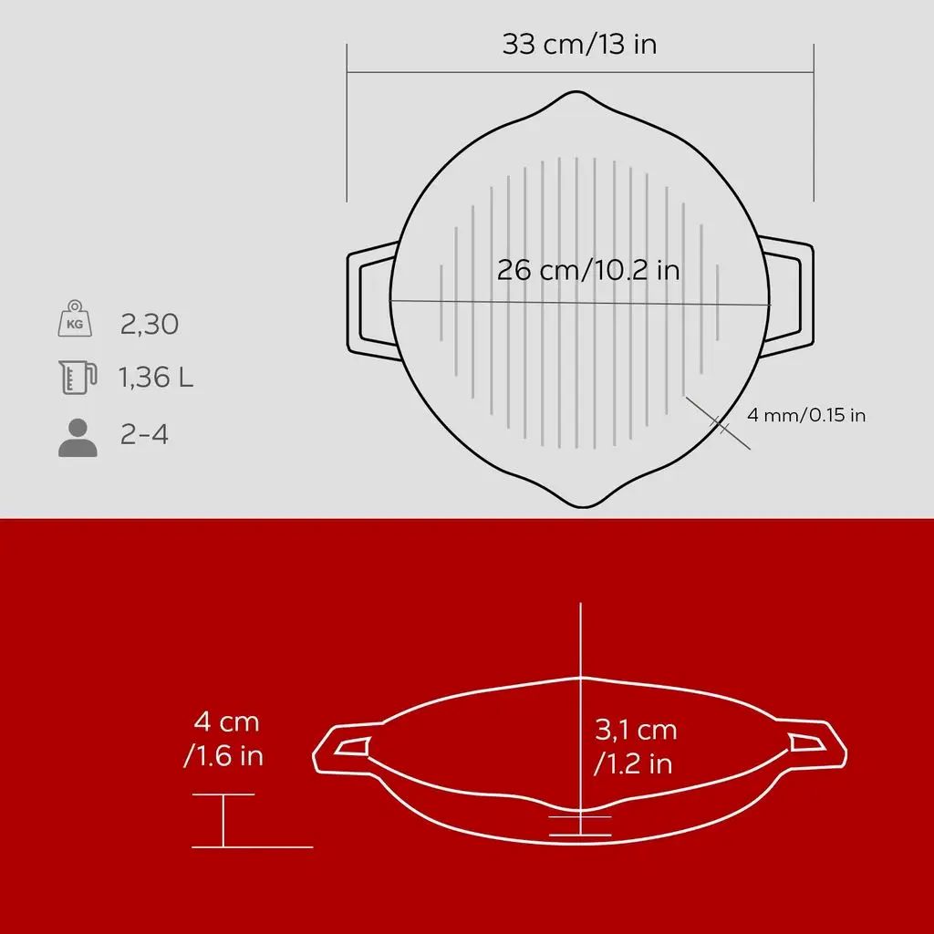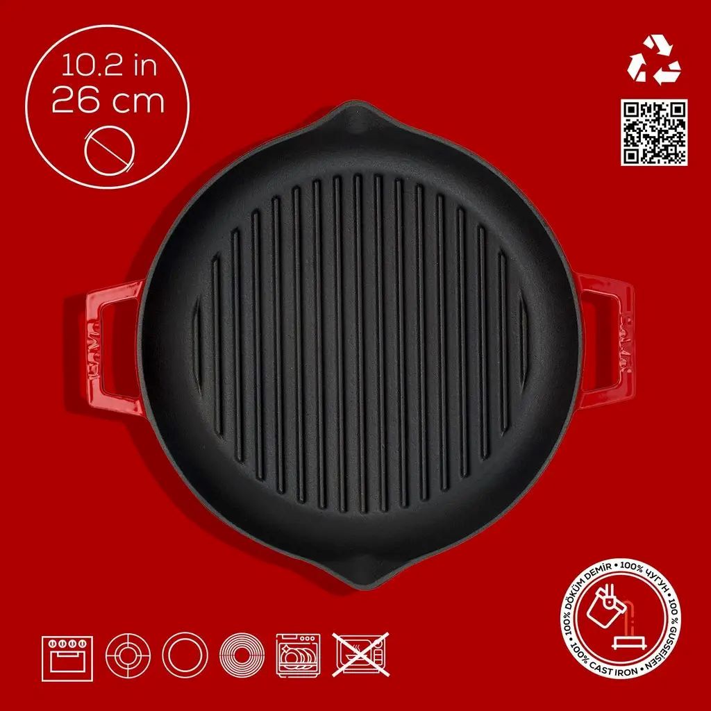 Tigaie grill, marca Lava, diametru interior 26 cm, 1,36 l capacitate, fabricata din fonta.