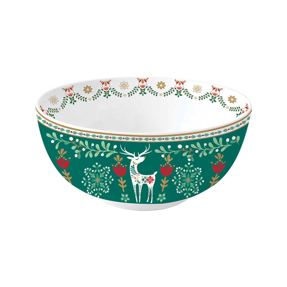 Bol "Christmas Folk", marca Nuova R2S, diametru 15 cm, fabricat din portelan.