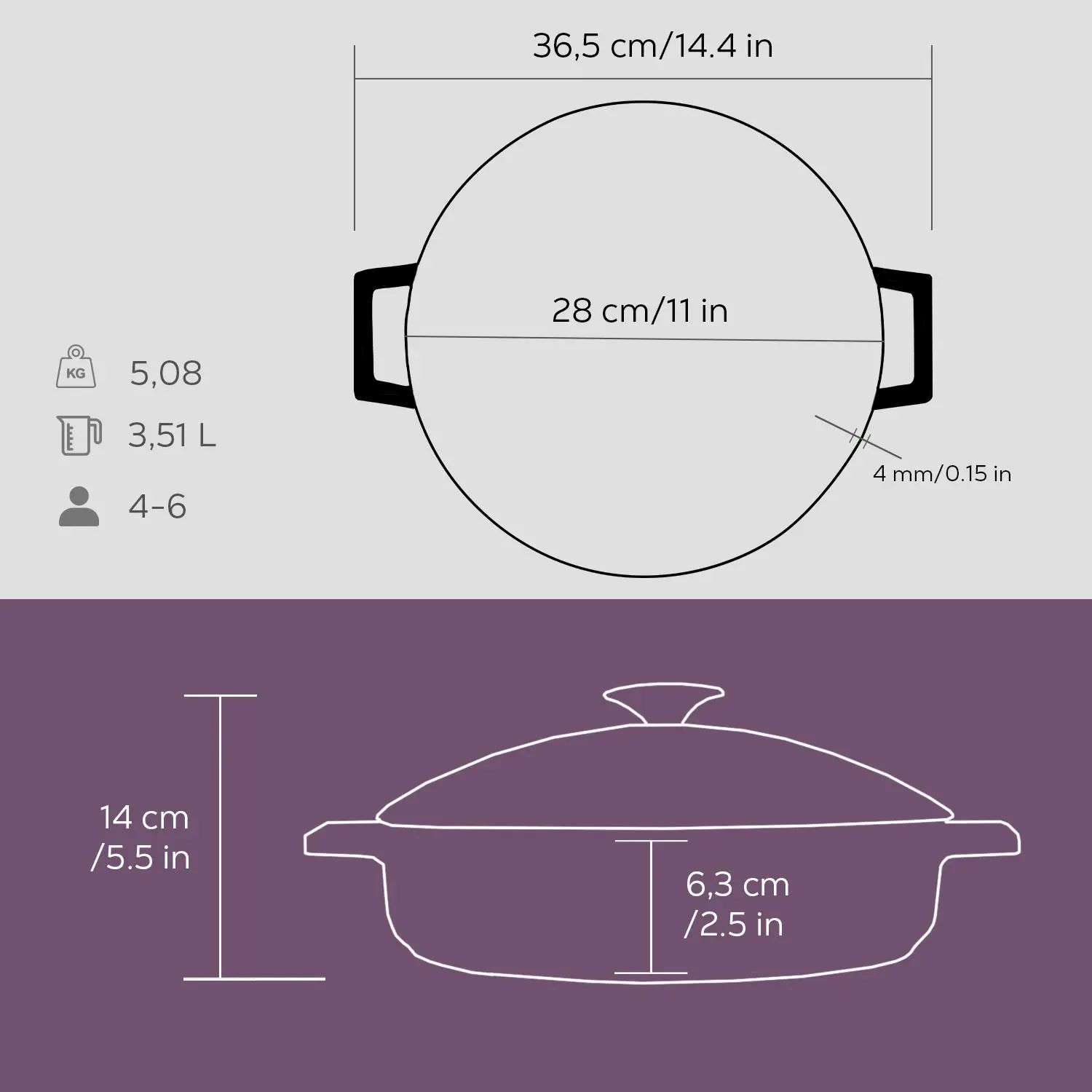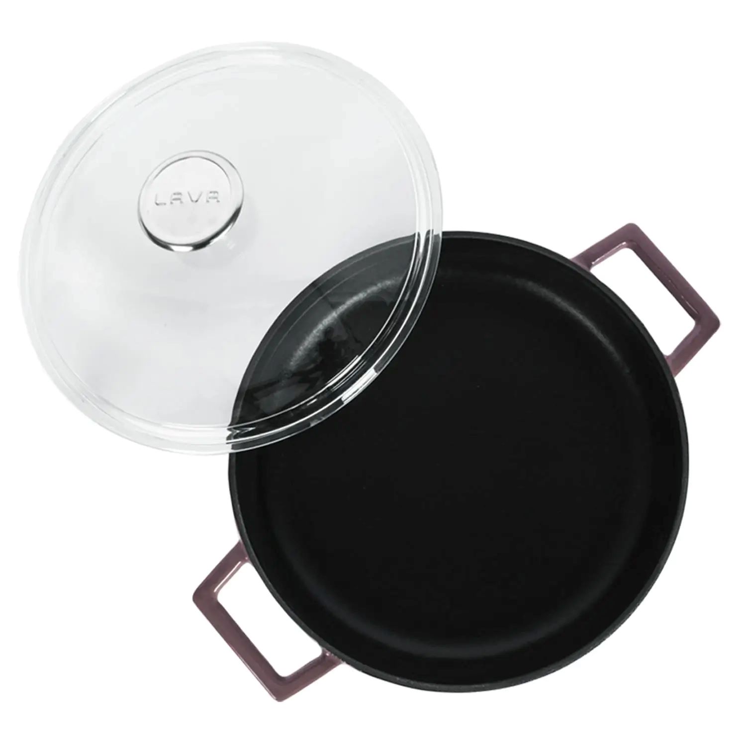 Cratita cu capac din sticla termorezistenta, marca Lava, diametru 28 cm, 3,5 l capacitate, fabricata din fonta.