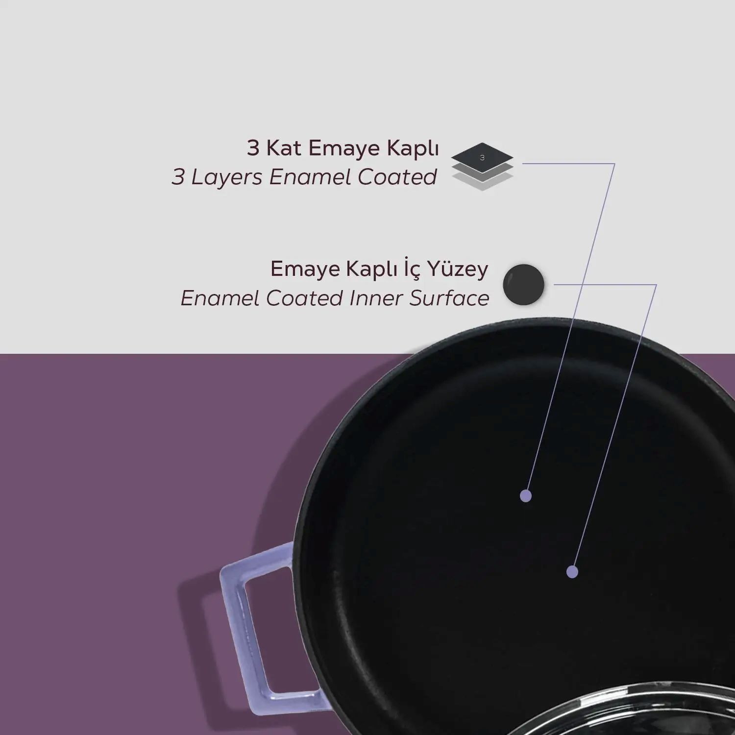 Peretii vasului au o grosime de 4 mm. In interior, vasul prezinta un strat de email negru ce faciliteaza crearea unei suprafete anti-adezive atunci cand se gateste folosind grasimi.