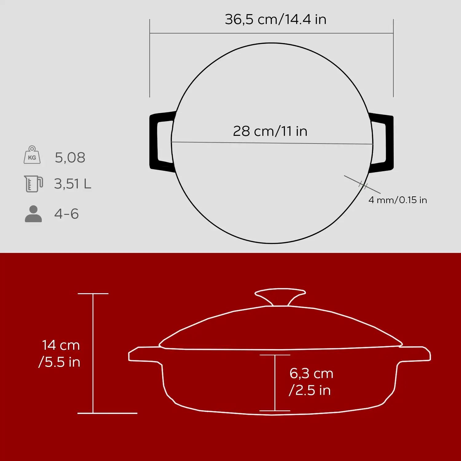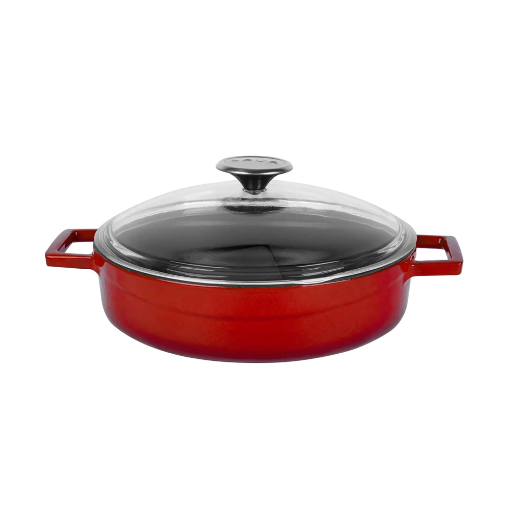Cratita cu capac din sticla termorezistenta, marca Lava, diametru 28 cm, 3,5 l capacitate, fabricata din fonta.