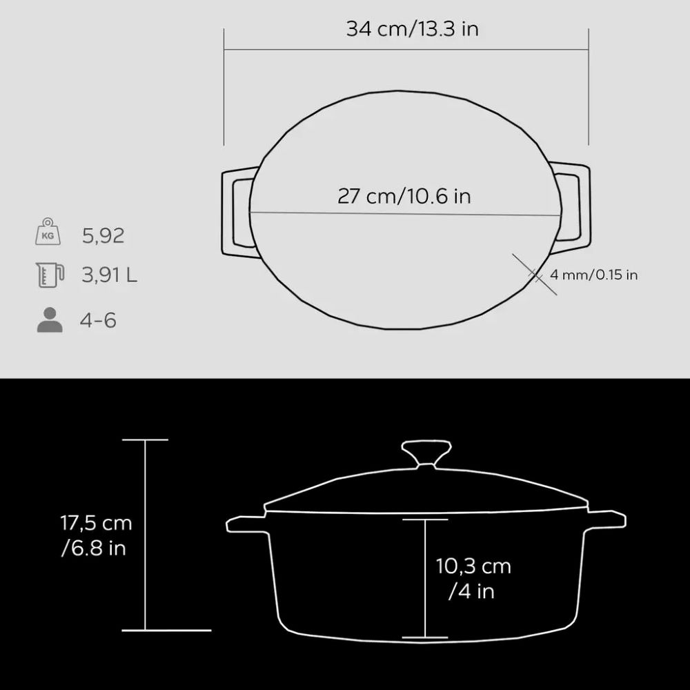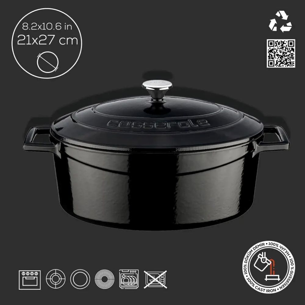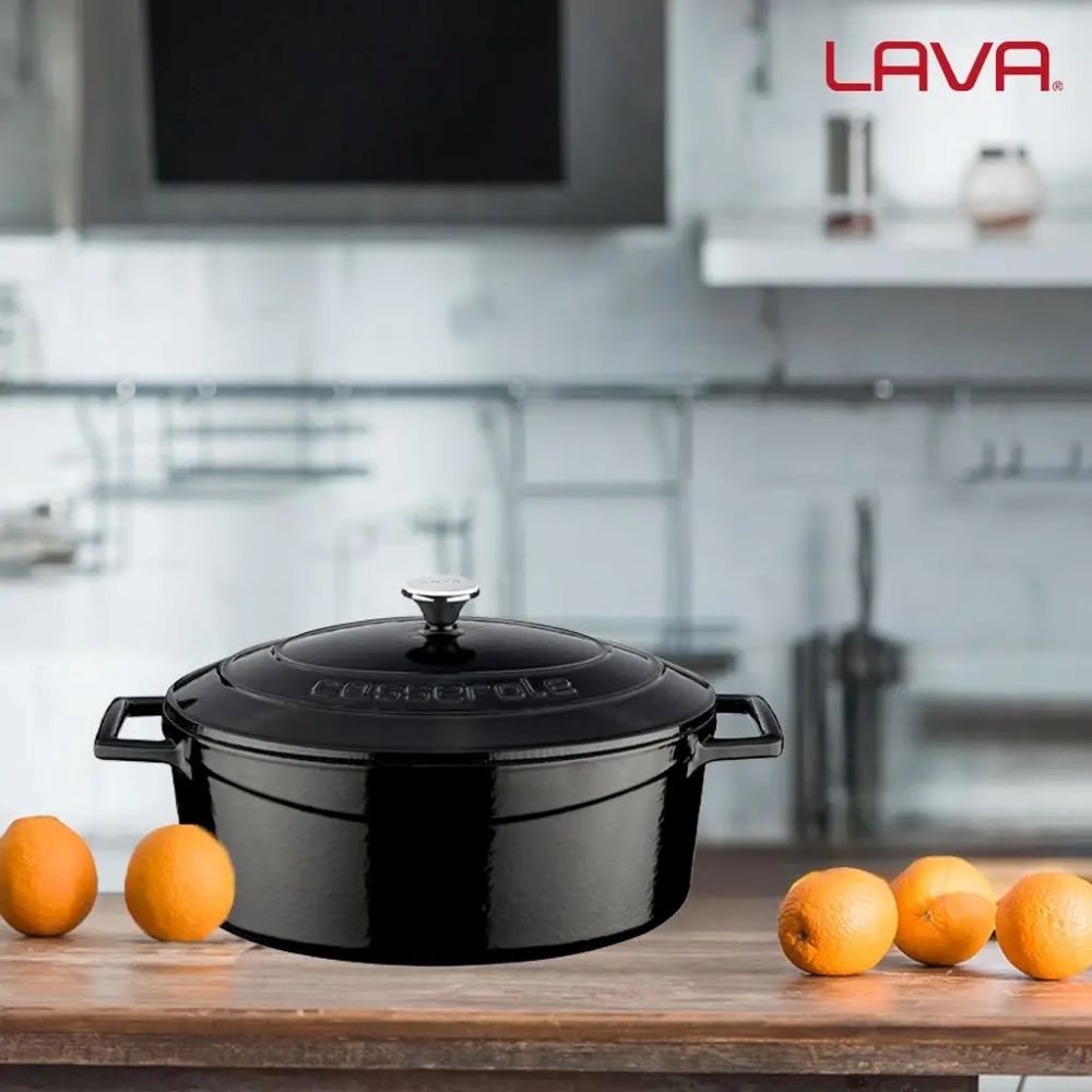 Cratita ovala, marca Lava, diametru 27 cm, 3,9 l capacitate, fabricata din fonta.