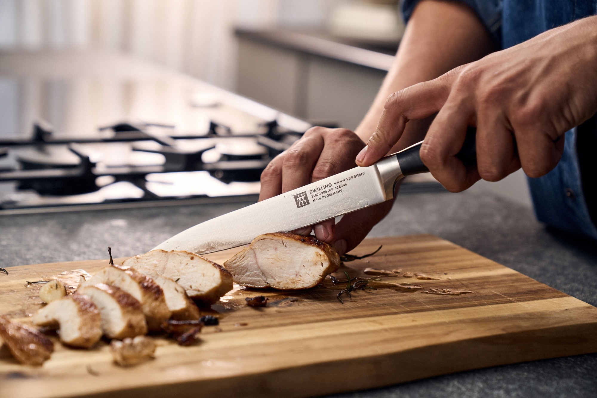 Cutit pentru feliat, marca Zwilling, cu lama de 20 cm lungime, confectionata din otel inoxidabil special, rezistenta la coroziune si socuri. Alte caracteristici:- Constructie SIGMAFORGE® - forjat dintr-o singura bucata, geometrie perfecta, precizie mare, stabilitate imbunatatita a lamei;- Lama FRIODUR®, calita prin proces criogenic;- Lama testata prin control laser;- Suport protector intre lama si maner;- Maner ergonomic din material sintetic usor de curatat;- Anti-rugina, anti-pata.