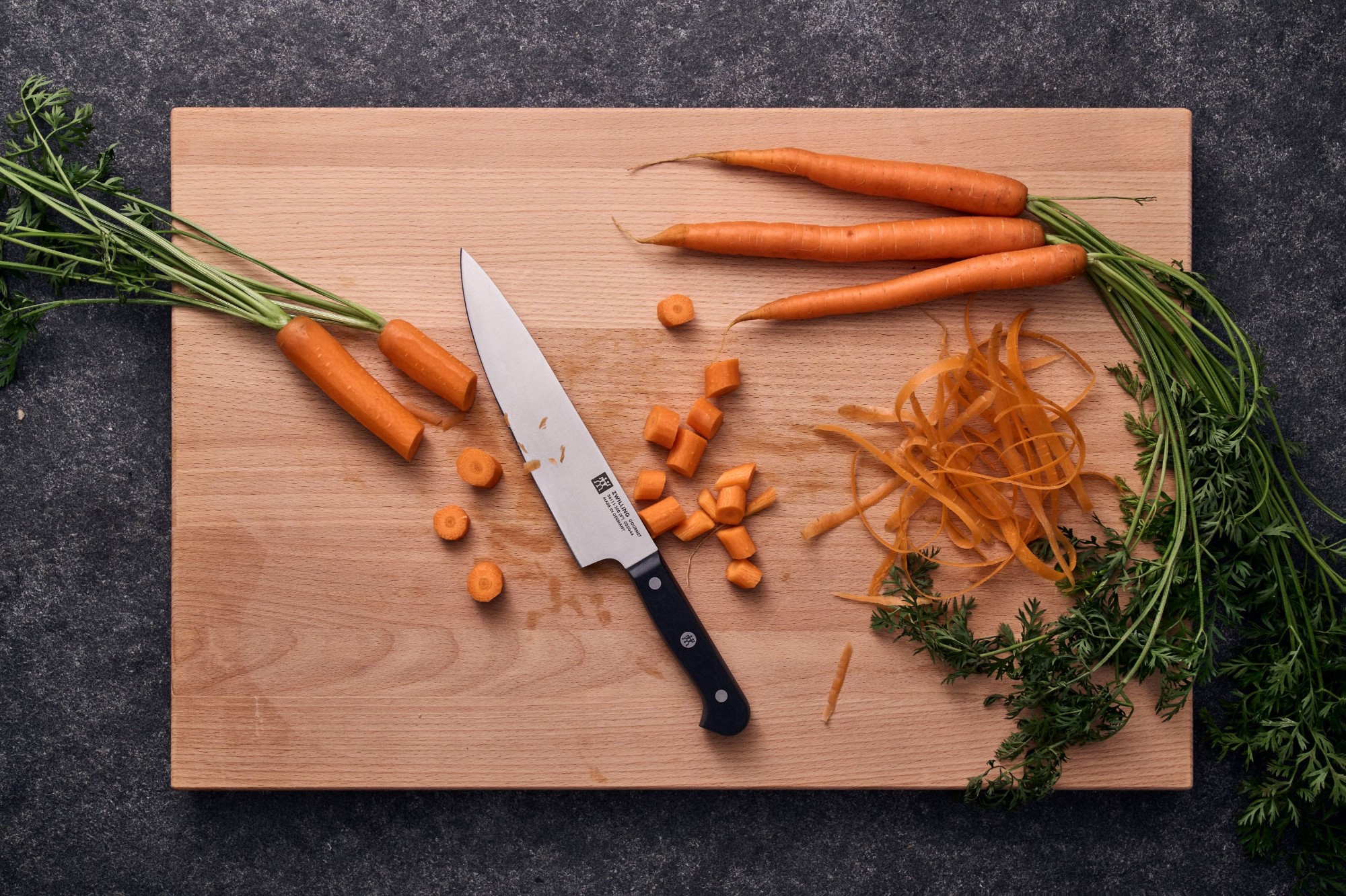 Cutitul bucatarului, marca Zwilling, cu lama de 20 cm lungime, fabricata din otel inoxidabil special, robusta, rezistenta la coroziune si socuri, dar in acelasi timp flexibila.