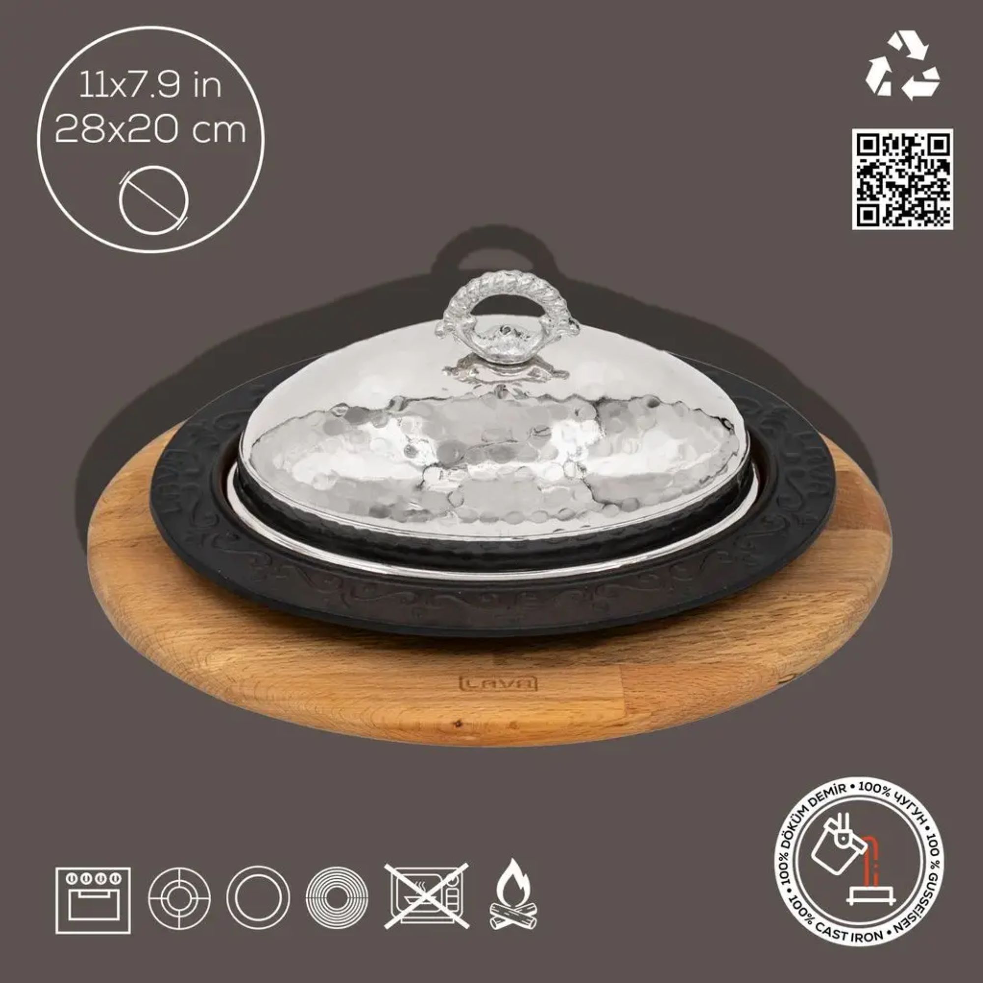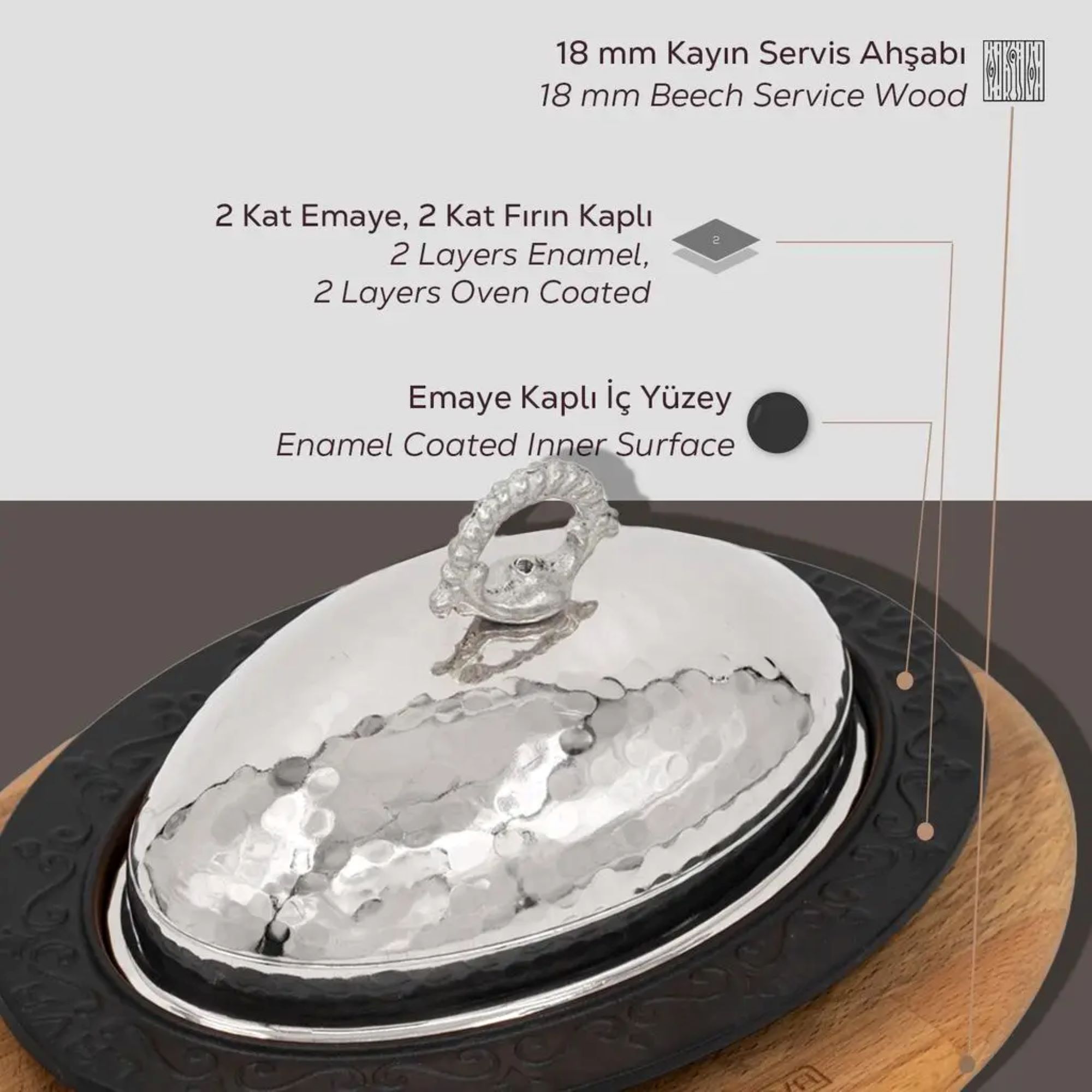 Farfurie ovala pentru servire kebab, cu capac si suport din lemn, marca Lava.