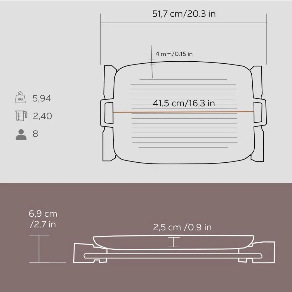 - tava grill, dimensiune 41,5 x 30 cm;