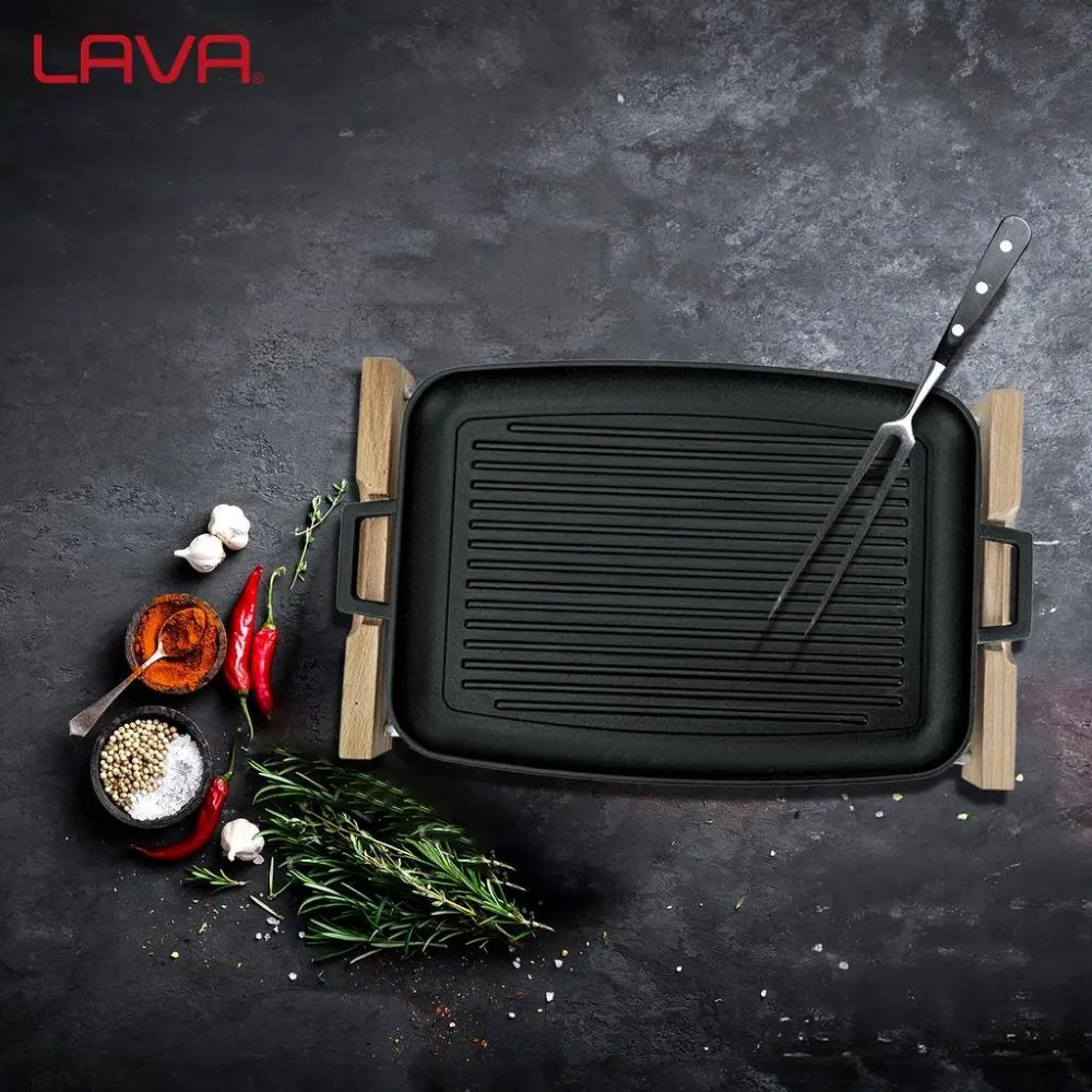 Set tava grill 2 piese, marca Lava, fabricata din fonta.