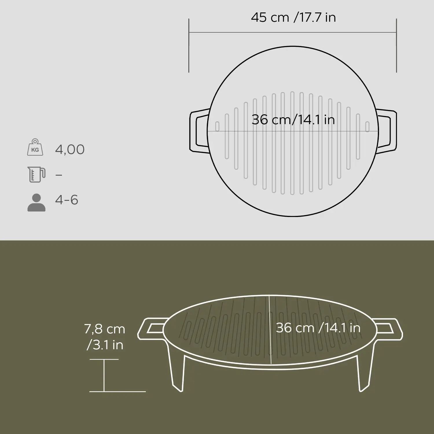Grill-ul din fonta prezinta un strat de email negru si are grosimea de 8 mm.