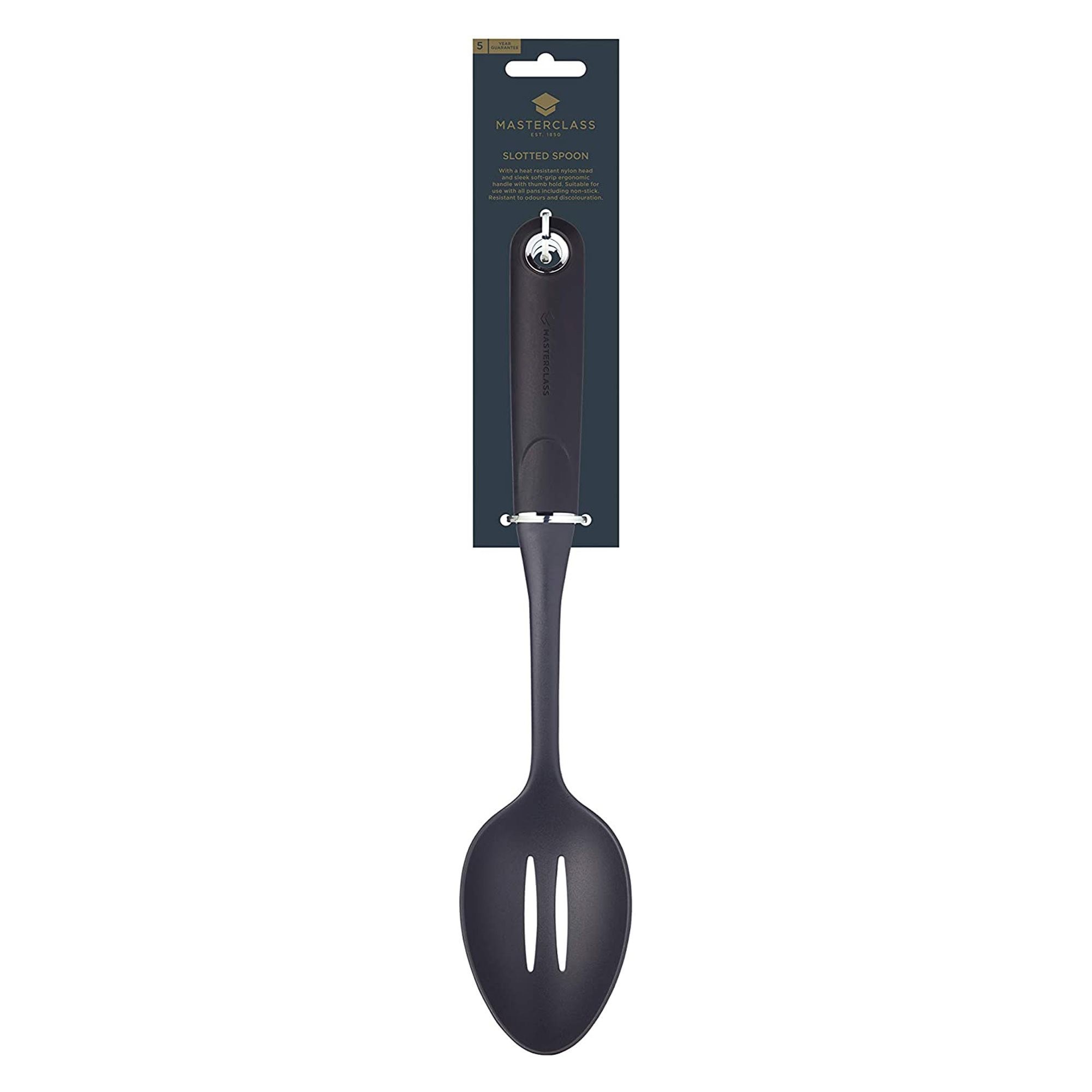 Cu un design ce prezinta fante ce permit scurgerea lichidului, aceasta lingura cu maner moale din gama MasterClass este ideala pentru a indeparta legume, carne din tigaie sau friteuza sau pentru a indeparta ouale fierte sau posate.