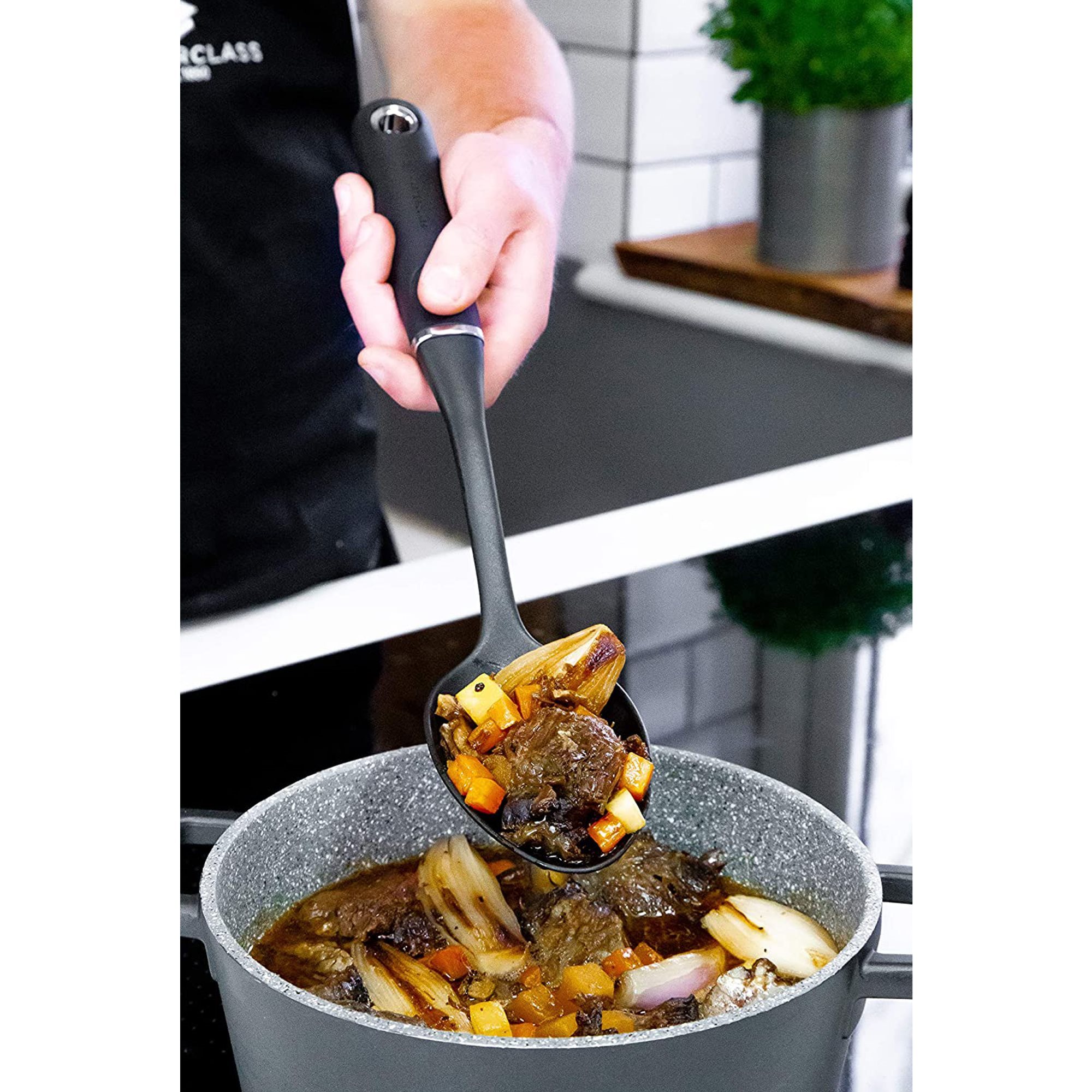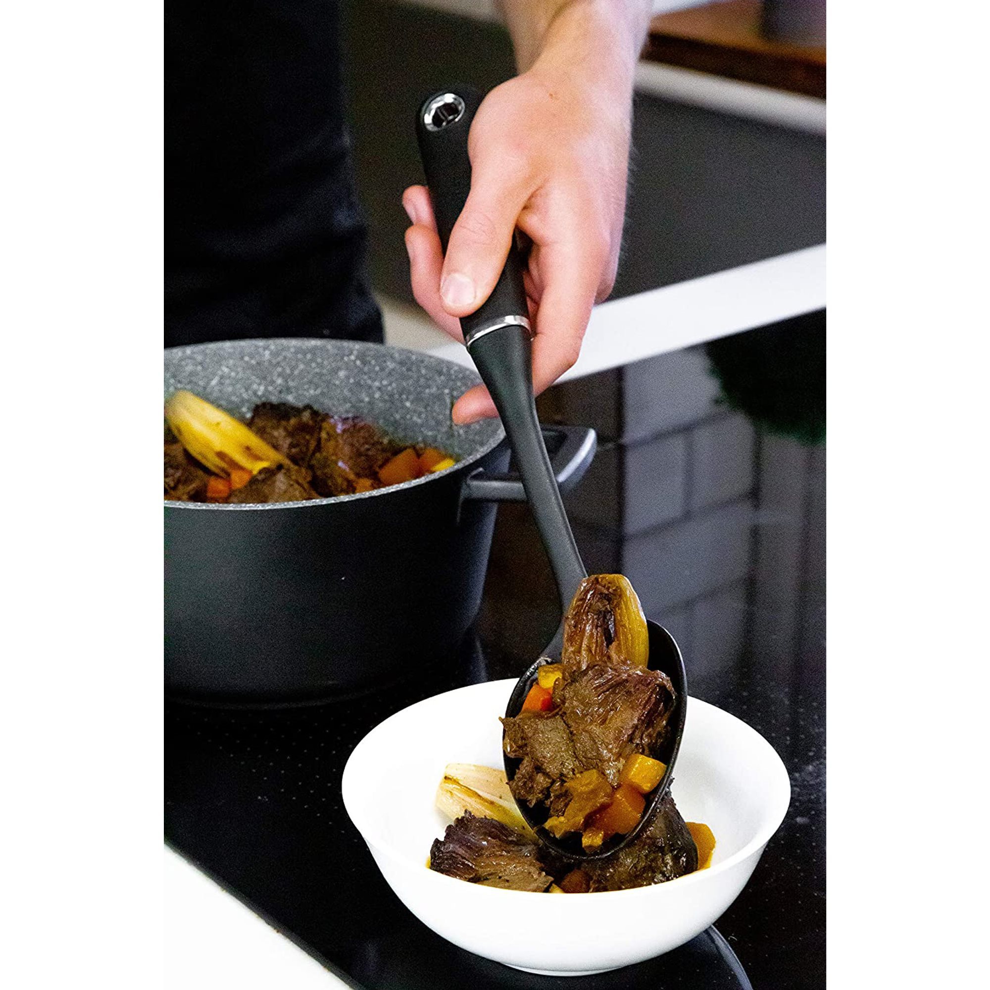 Serviti, amestecati sau scoateti alimente delicate, cu aceasta lingura premium cu maner moale din gama MasterClass.