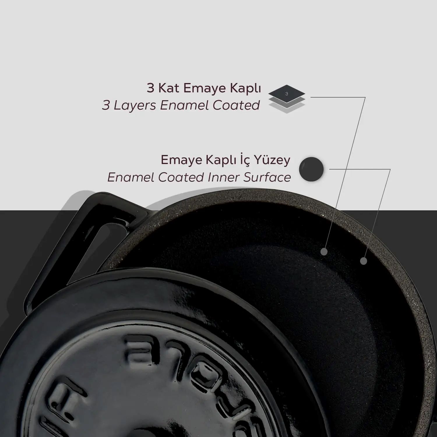 Peretii vasului au o grosime de 3 mm. In interior, vasul prezinta un strat de email negru ce faciliteaza crearea unei suprafete antiadezive atunci cand se gateste folosind grasimi.