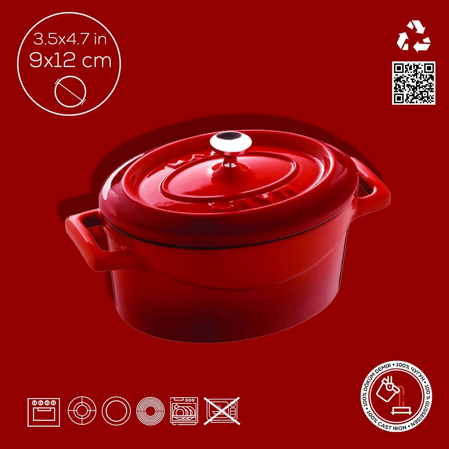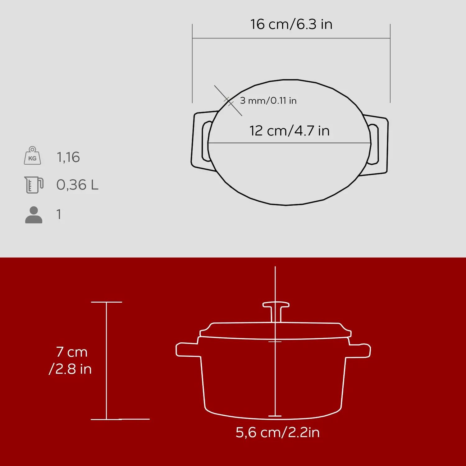 Cratita ovala cu capac, marca Lava, lungime 12 cm (16 cu manere), capacitate 0,36 L, fabricata din fonta.