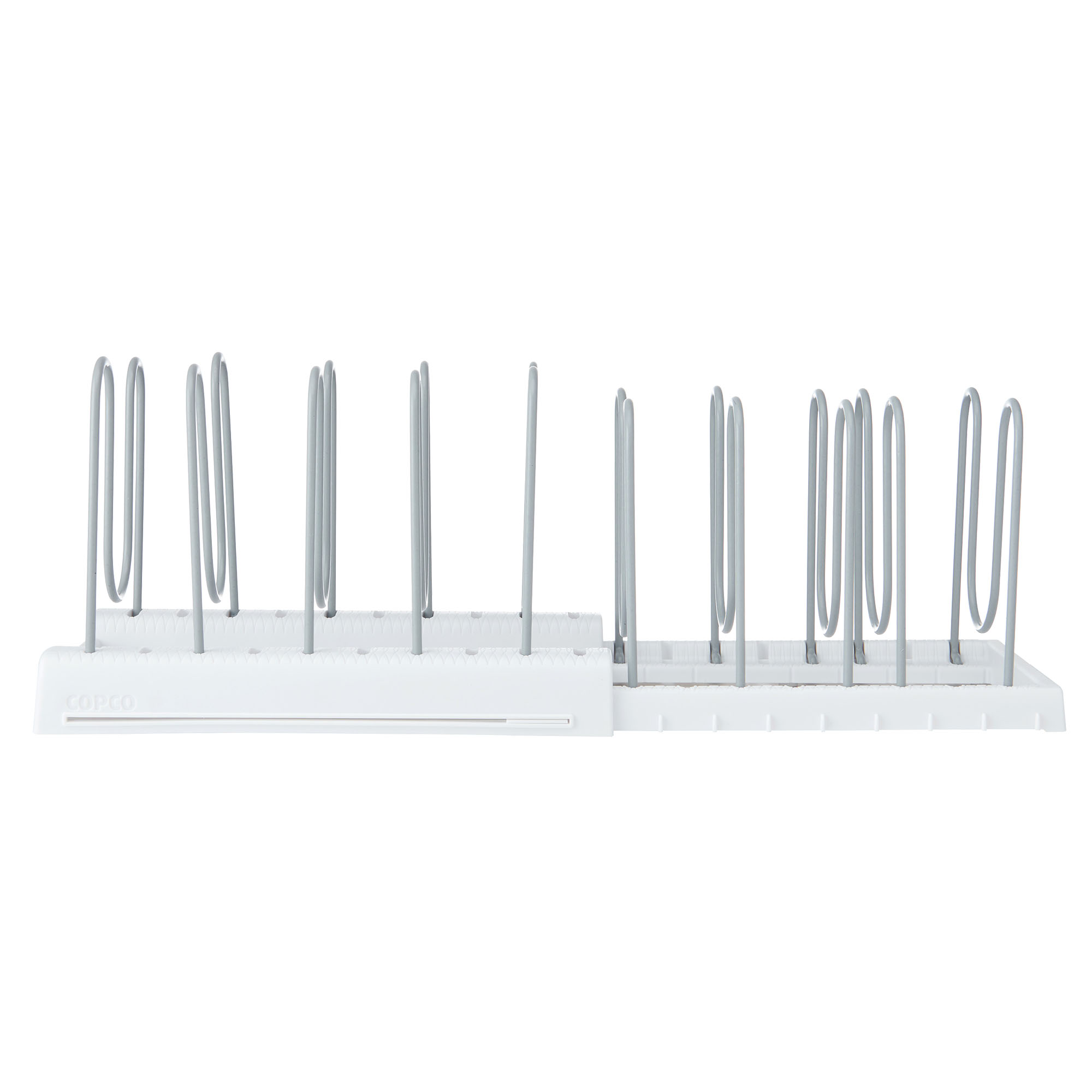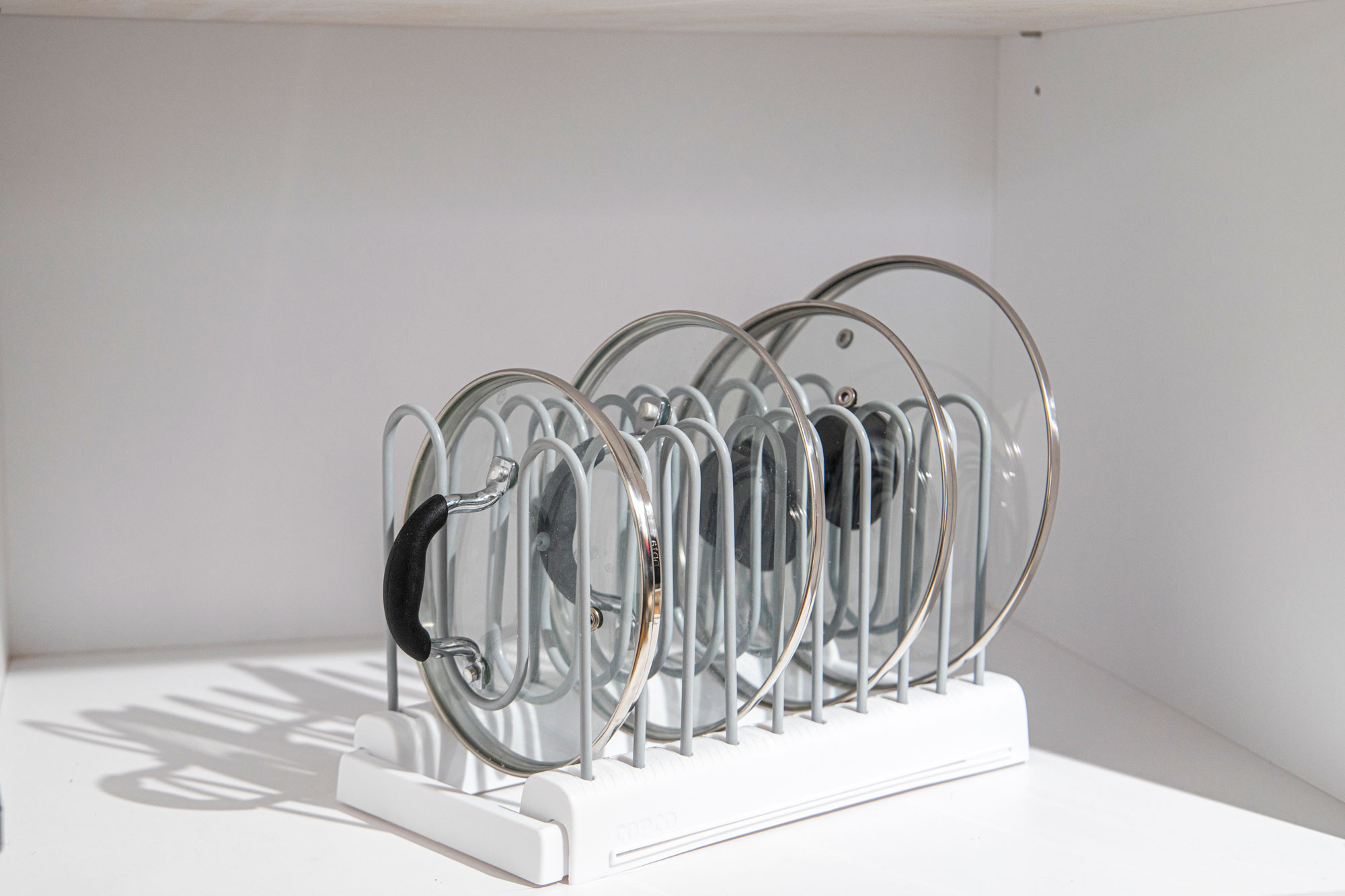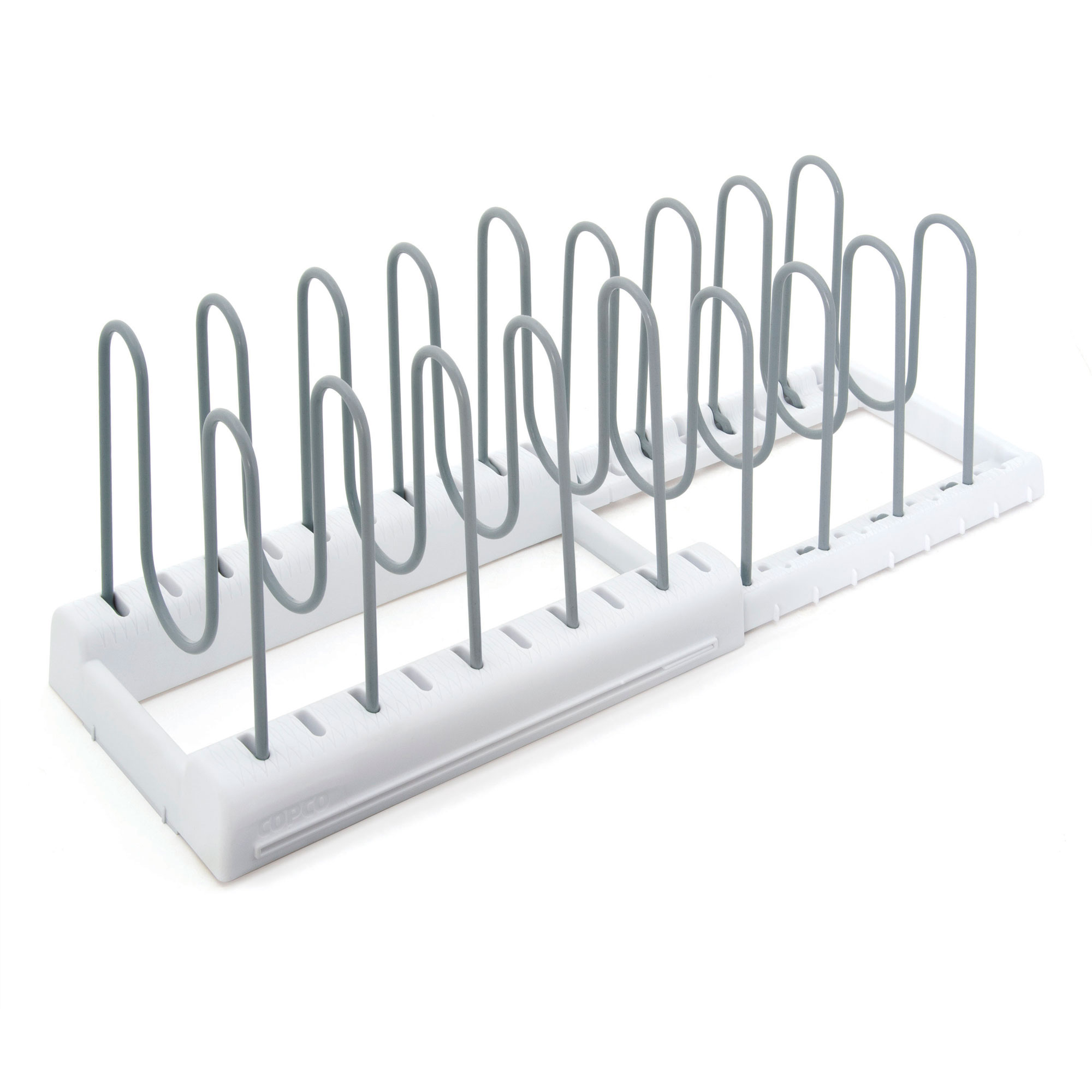 Organizatorul extensibil "Copco", de la Kitchen Craft, reprezinta solutia ideala pentru depozitarea capacelor de diferite dimensiuni, vaselor de copt, tigailor si tocatoarelor.