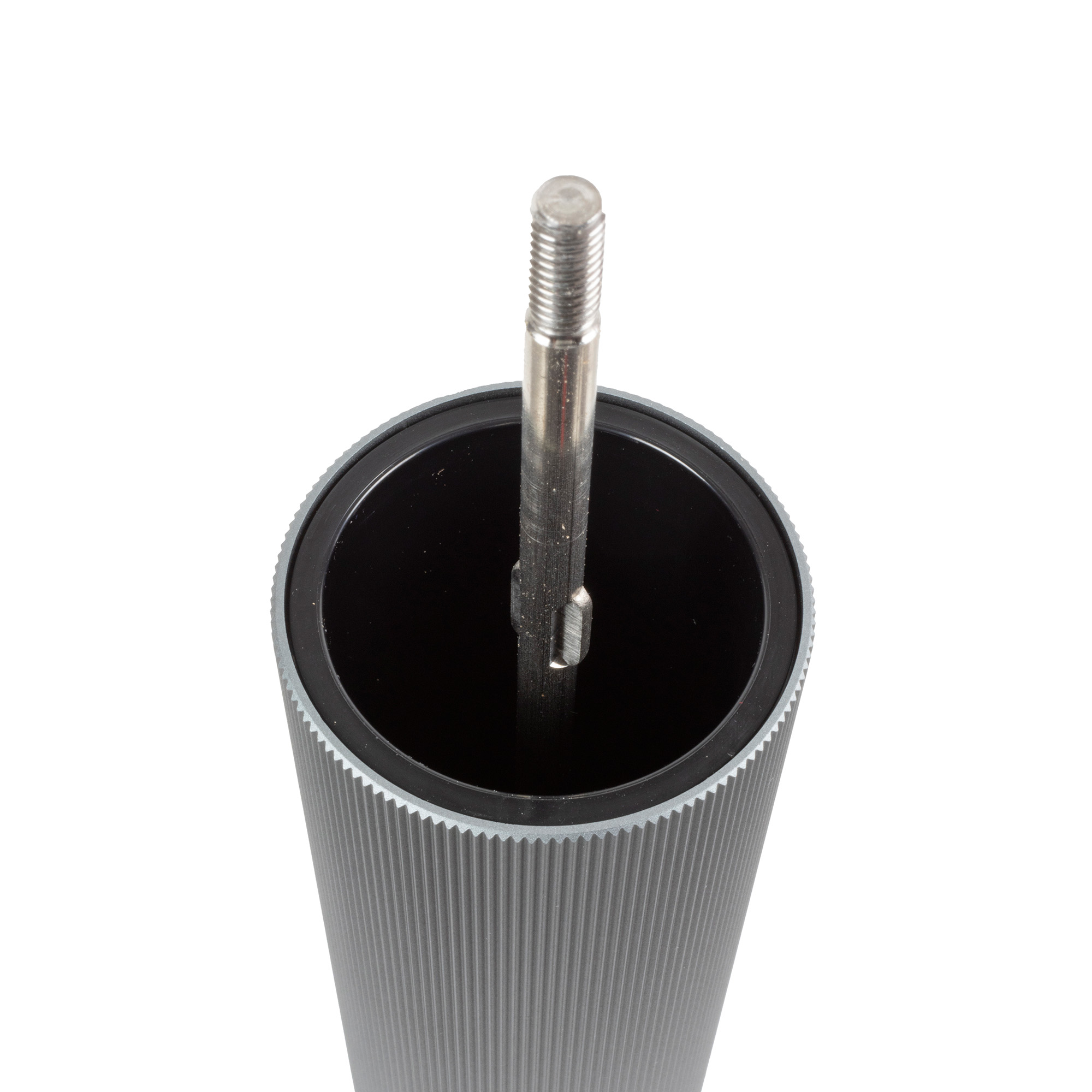 - Materiale: aluminiu striat (corp), lemn (capac), otel inoxidabil (mecanism).