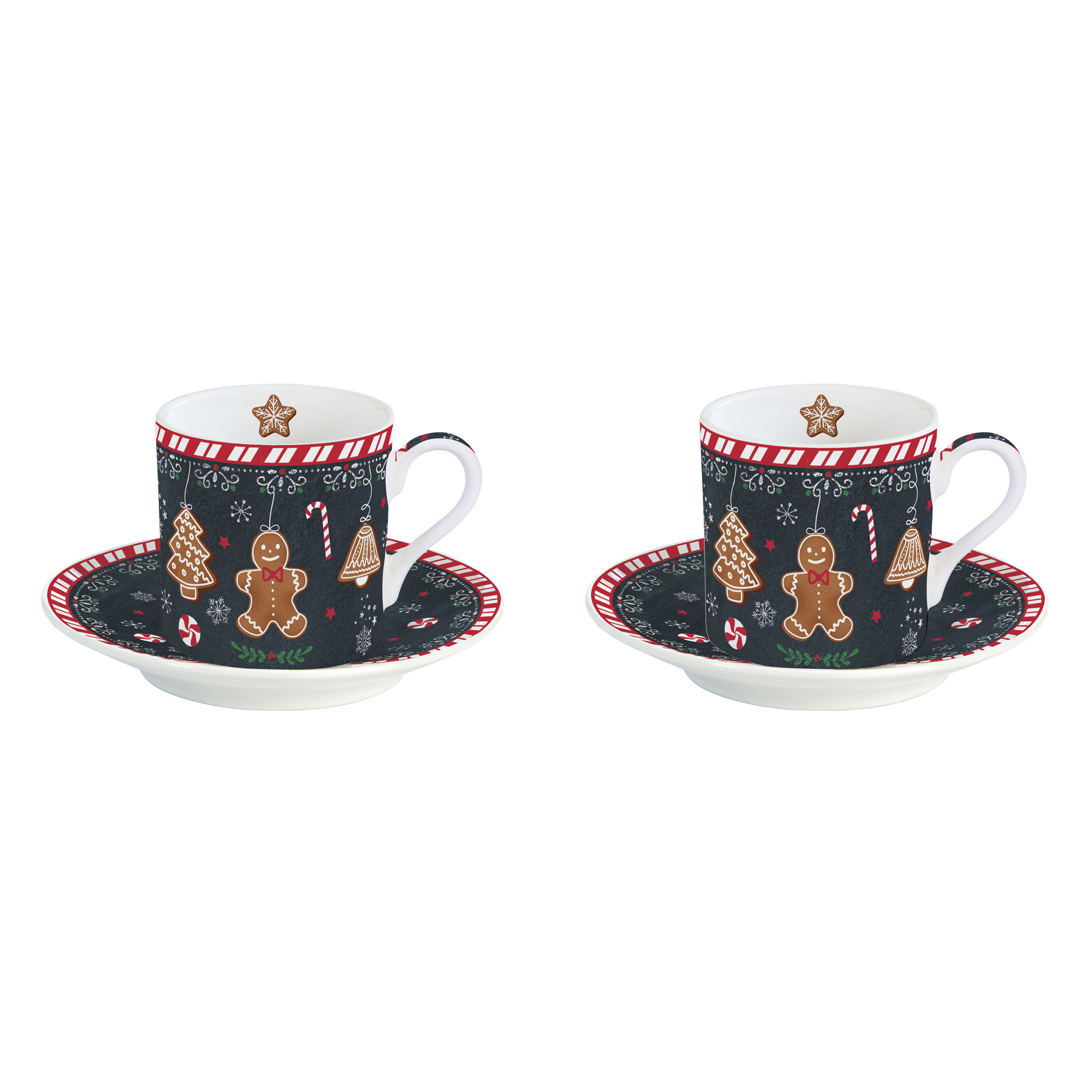 Setul de 2 cesti cu farfurioara din colectia "Gingerbread", marca Nuova R2S, din portelan, fiecare cu capacitatea de 100 ml, este alegerea perfecta.