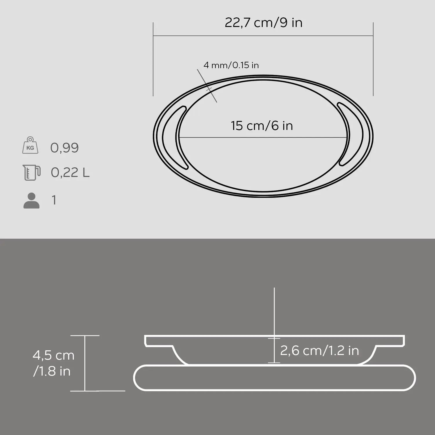 Dimensiuni interioare tava: 15 x 10 x 2,6 cm