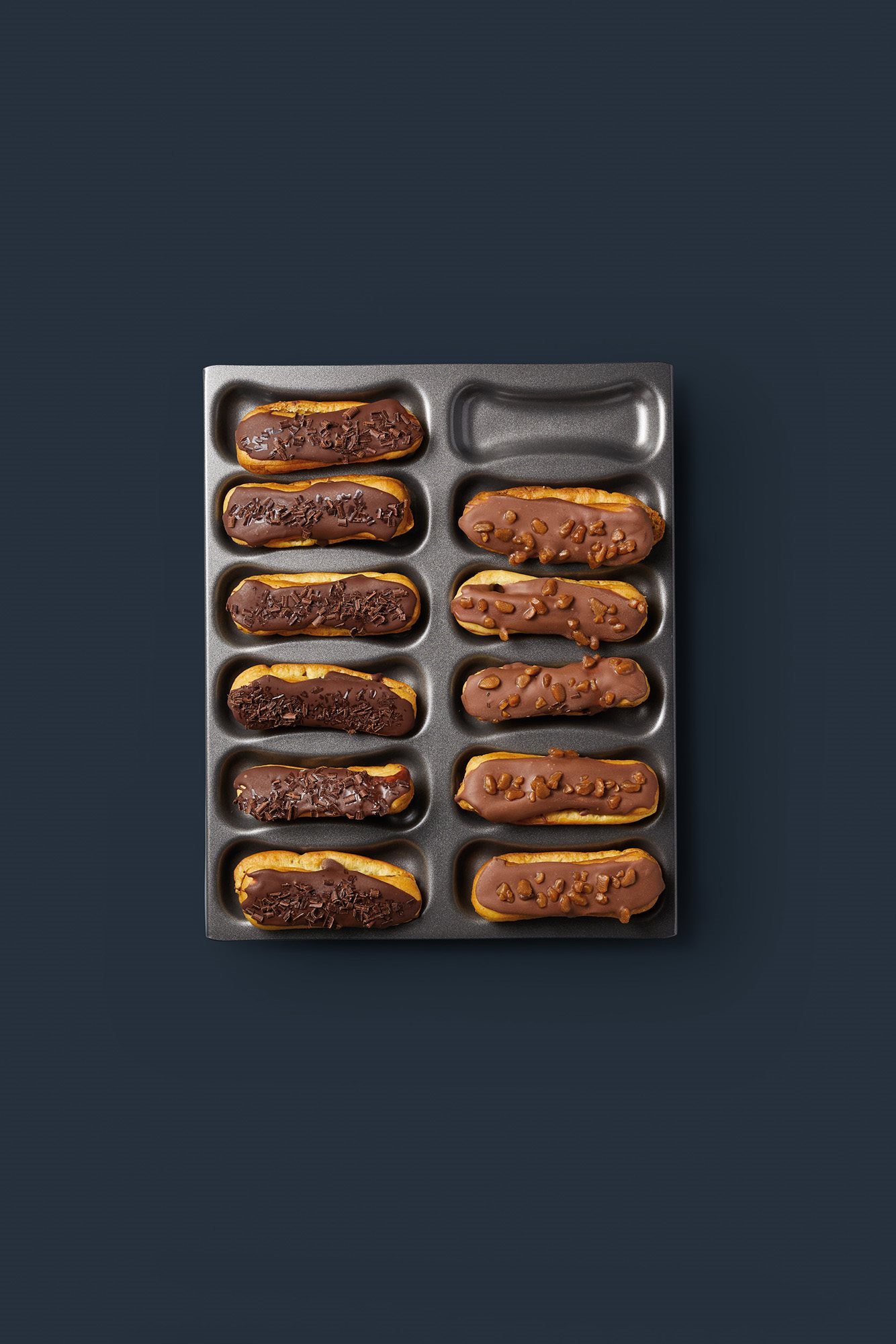 Tava pentru ecleruri, marca Kitchen Craft din otel, dimensiuni 31 x 2,5 x 16,5 cm cu 12 compartimente.