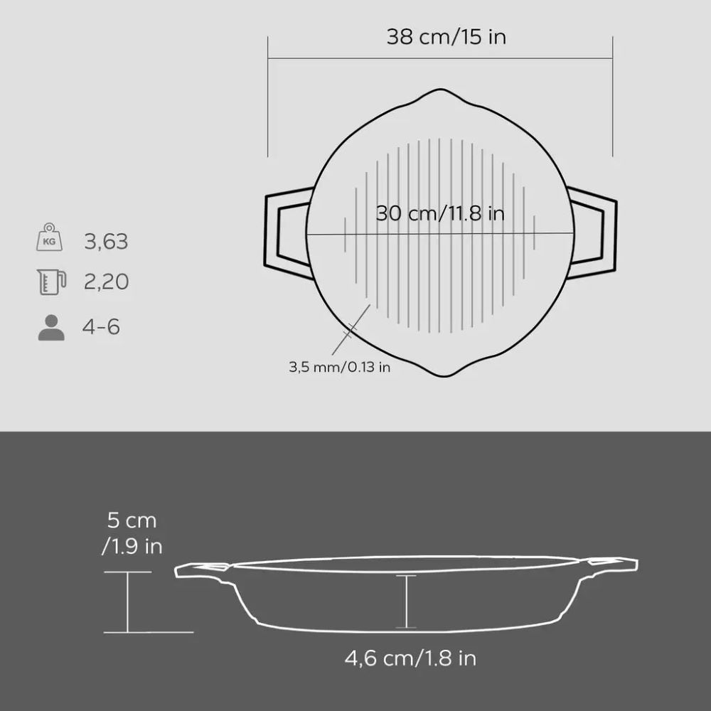 Tigaie grill concava, fonta, 30 cm - LAVA