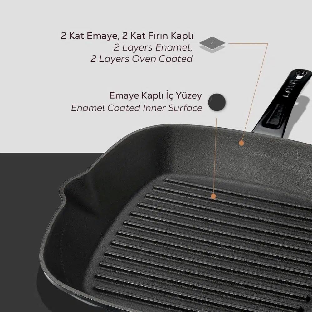 Tigaie Grill patrata, marca Lava, dimensiuni 28 x 28 cm, fabricata din fonta.