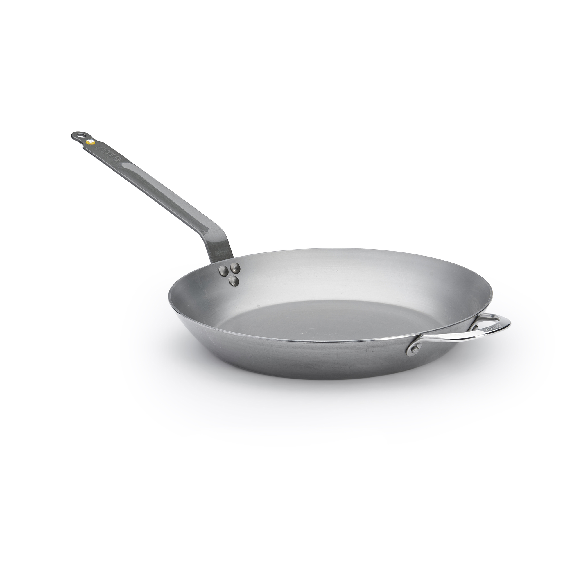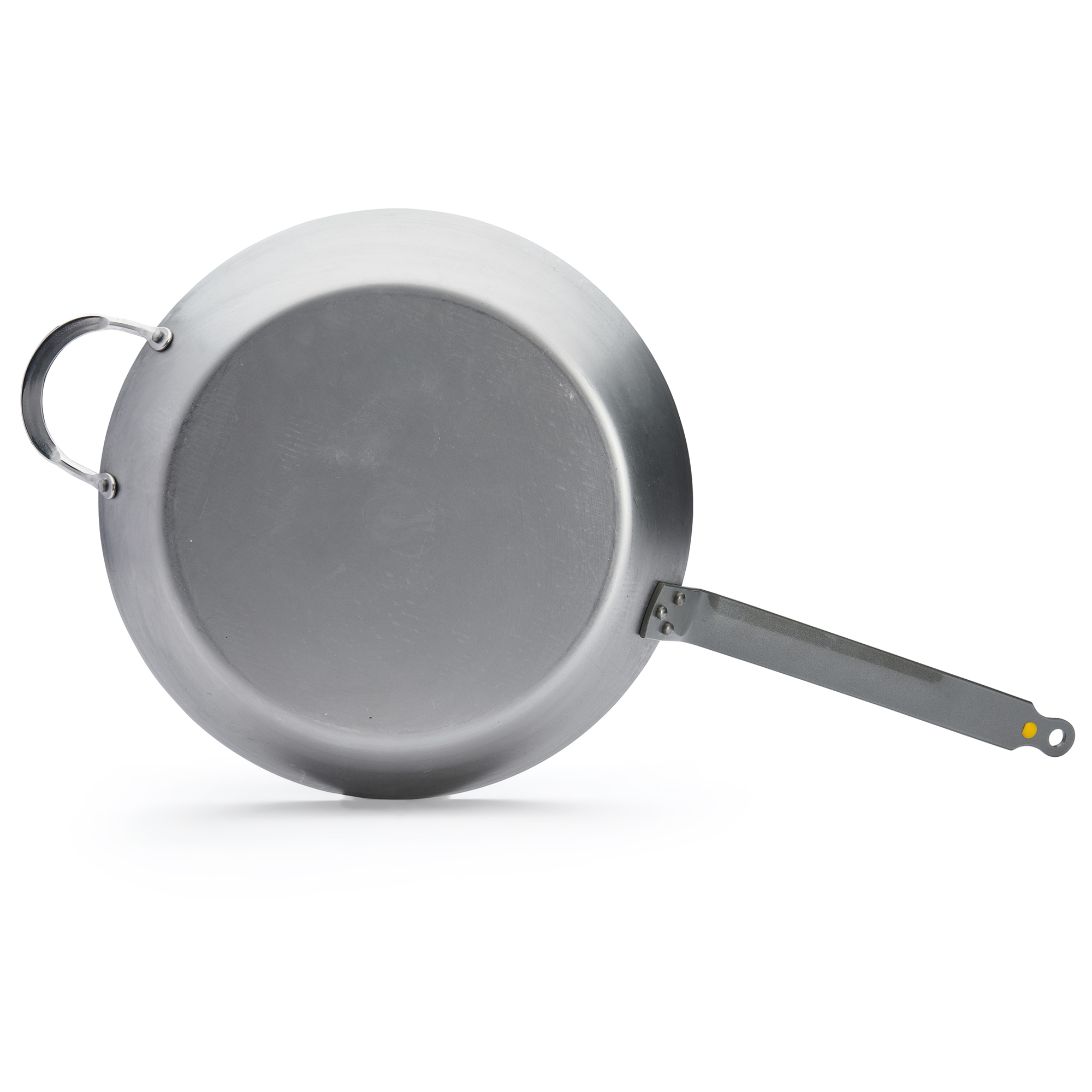 Tigaie profesionala, marca de Buyer, diametru 36 cm, inaltime 5 cm, fabricata din otel cu o grosime de 3 mm, care nu se deformeaza. Tigaia este finisata utilizand ceara naturala de albine ce protejeaza tigaia contra oxidarii si faciliteaza asezonarea acesteia inainte de folosire (vedeti cum se face asezonarea in filmul de mai jos). Odata cu asezonarea treptata tigaia capata proprietati naturale antiaderente.