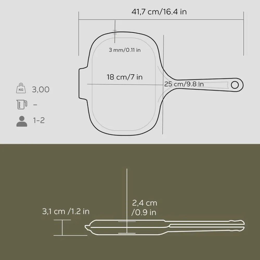 Tigaie toaster, marca Lava, dimensiuni 26 x 18 cm, fabricata din fonta.